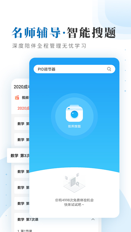 智能涵盖理工、经管、文史、法学、医学、农学等多个学科的,满足成人学习的不同应用需求。有问题,拍照搜一搜轻松解决!系统支持模糊搜索和相似题型推荐,即使遇到陌生题目也能快速找到解题思路。