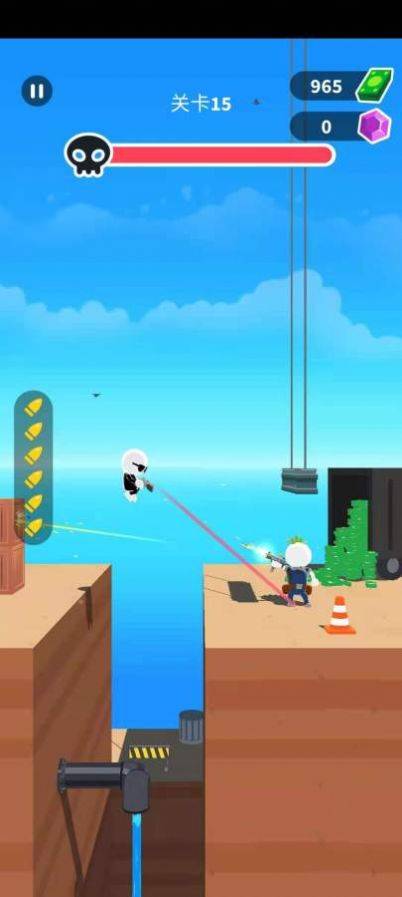 游戏采用经典的竖版射击玩法,玩家需要通过滑动屏幕控制角色移动,点击屏幕进行射击。卡通的游戏画面搭配酷炫的射击动作,让每一场战斗都充满视觉冲击力。游戏提供了多达50款不同的武器,从手枪到火箭筒,应有尽有,玩家可以根据自己的喜好自由选择。随着关卡的推进,难度会逐渐提升,敌人数量和种类也会增加,考验玩家的反应能力和策略思维。此外,游戏还加入了独特的"特技系统",玩家可以操作角色做出各种高难度动作,比如从高处跃下时发动空中射击,或者利用场景中的道具进行反击。