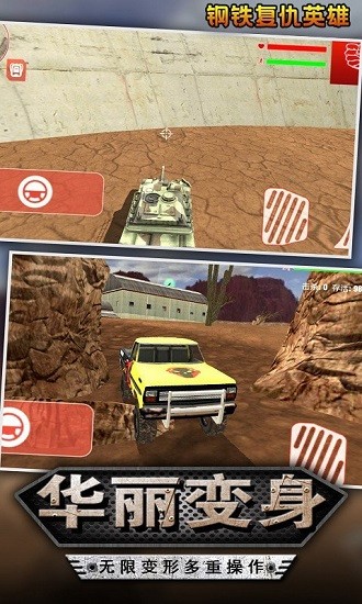 钢铁复仇英雄是一款充满未来科技感的3D机甲战斗手游,玩家将化身机甲指挥官,驾驶可变形战车穿梭于战场。游戏独创的变形系统让你在高速移动的载具形态与火力全开的战斗机器人之间自由切换,搭配震撼的粒子特效与爆炸场景,带来前所未有的视觉冲击。从基础的机枪扫射到毁灭性的导弹齐射,每台机甲都配备了专属武器库,让你体验真正的钢铁洪流对决。动态光影与精细建模打造的科幻战场,配合流畅的物理引擎反馈,让每一次变形与开火都充满力量感。