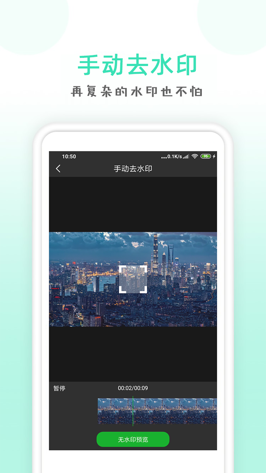 点点去水印app的核心功能是快速去除视频中的水印,只需简单点击即可完成操作,省时省力。对于复杂背景上的水印,应用提供了手动去水印功能,通过精细化的处理技术,最大程度减少违和感,让去水印后的视频看起来更加自然。
