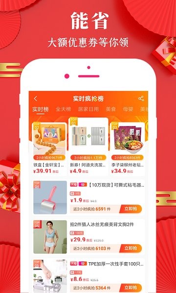 能省:平台每日更新上千张大额优惠券,涵盖衣食住行各个品类,最高可省90%,让您的每一分钱都花得值。