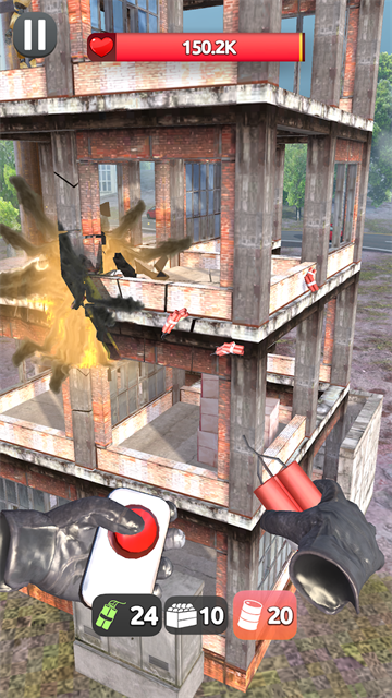 游戏的基本规则是通过有限的炸弹资源来彻底摧毁目标建筑物。玩家需要仔细观察建筑物的结构特点,找出关键的承重部位进行爆破,才能达到事半功倍的效果。游戏提供了三种基本操作方式:滑动屏幕可以自由调整视角,点击屏幕可以放置炸弹,再次点击可以立即引爆。这种直观的操作方式让玩家能够专注于爆破策略的制定。