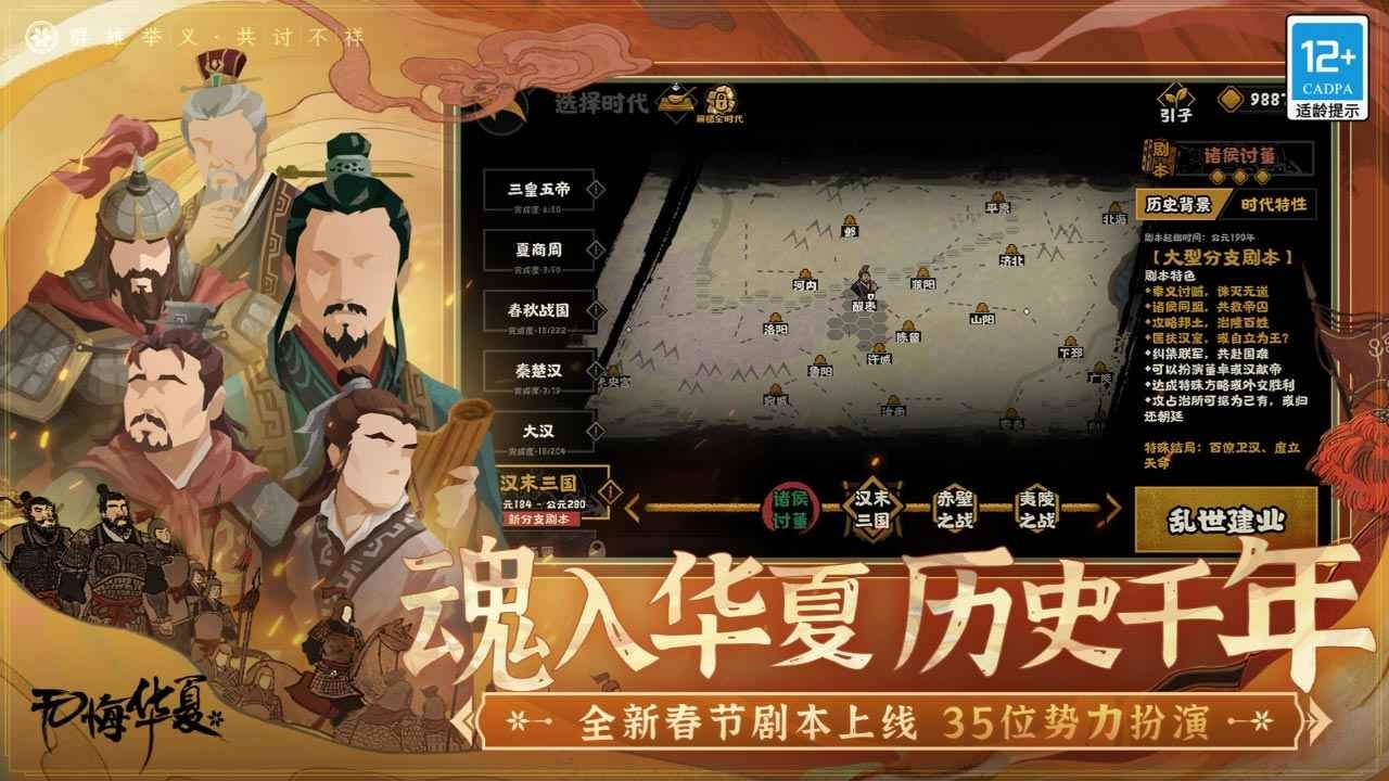 游戏采用创新的"三军九阵"兵种克制系统,弓骑步循环相克基础上加入象兵、车兵等特殊单位。历史剧情涵盖从夏商周到明清的200+著名战役,并设有"史实模式"与"演义模式"双线。角色虽无独立传记,但通过"将魂"系统可解锁专属台词和羁绊效果。美术上运用水墨动态渲染技术,洛阳城等场景精确还原古建筑规制,战役地图还随季节呈现不同风貌。