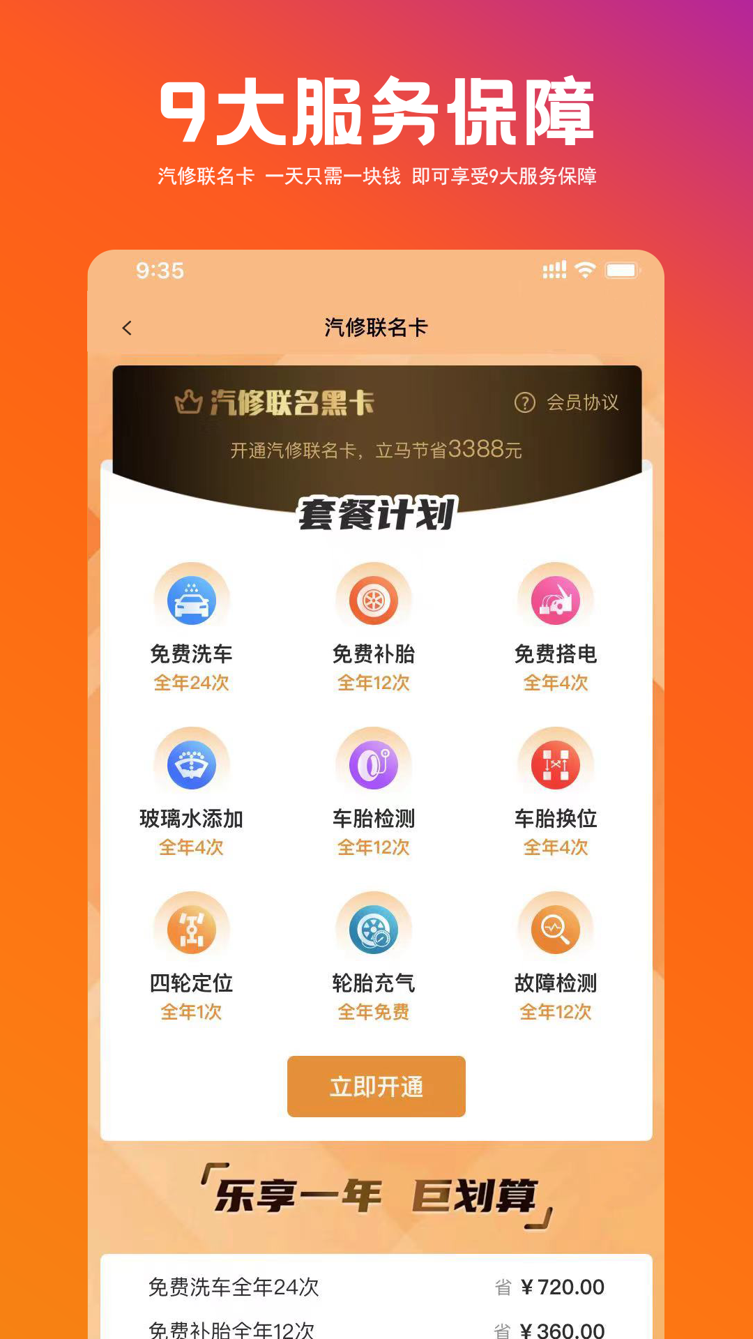 超值会员权益全面升级,现包含12项核心服务。除基础项目外,新增了空调清洗、发动机积碳清理等深度养护项目。会员还可专享合作4S店8折优惠,全年累计最高可省5000元。创新推出的"家庭账号"功能,支持绑定3台车辆共享权益,满足多车家庭的养护需求。