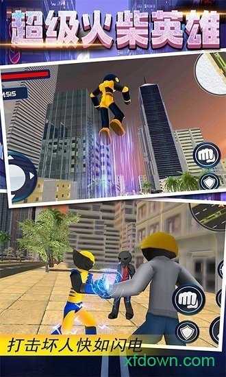 热血漫画风格的城市英雄,常如美国大片中的蜘蛛侠、蝙蝠侠、美国队长。游戏中的英雄形象设计既保留了火柴人的简约特色,又融入了超级英雄的经典元素。