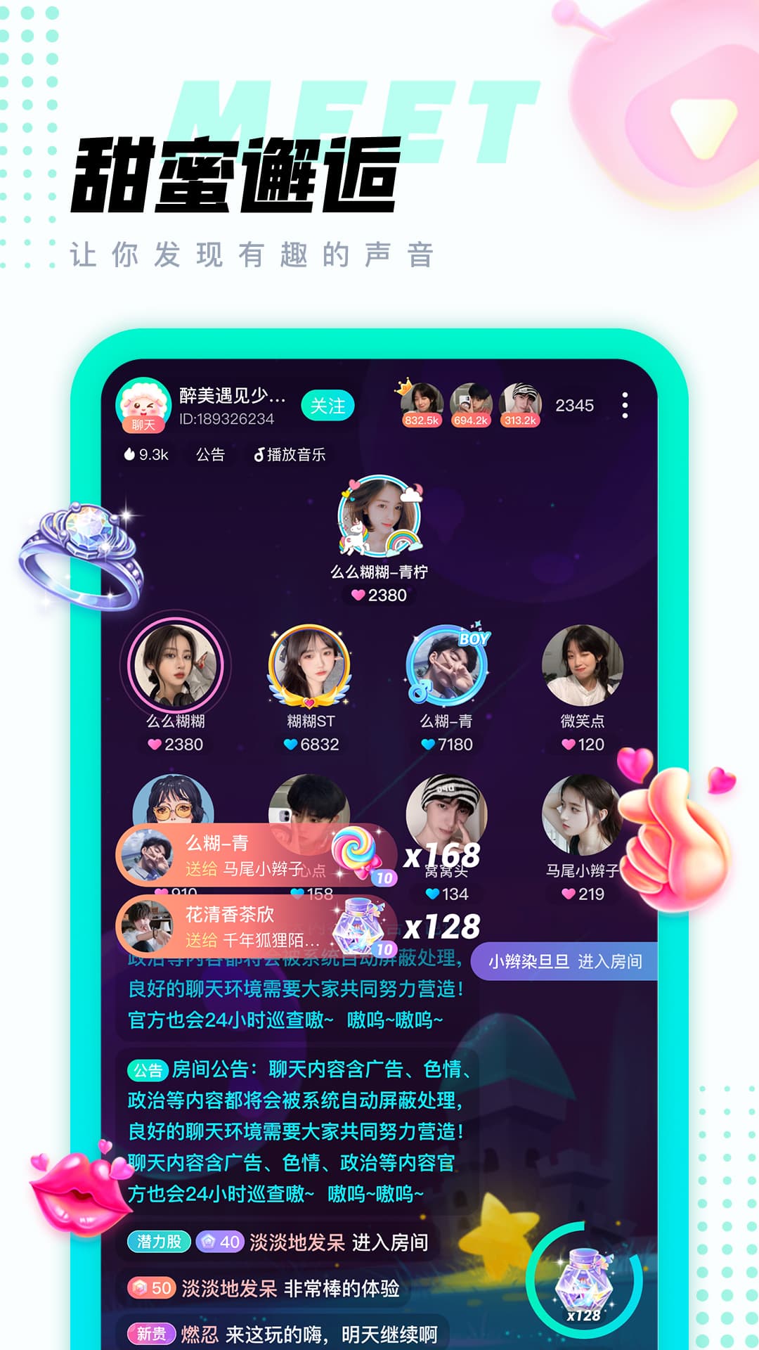 软件主打语音社交,在这里你可以一键开启聊天,也能随时找到游戏陪玩伙伴,满足各种社交需求。平台提供的服务十分丰富,除了常规的语音交流外,还支持在线K歌功能,让你尽情展现歌喉。各种精彩的小游戏这里应有尽有,用户们可以随时互动,在娱乐中建立深厚友谊。