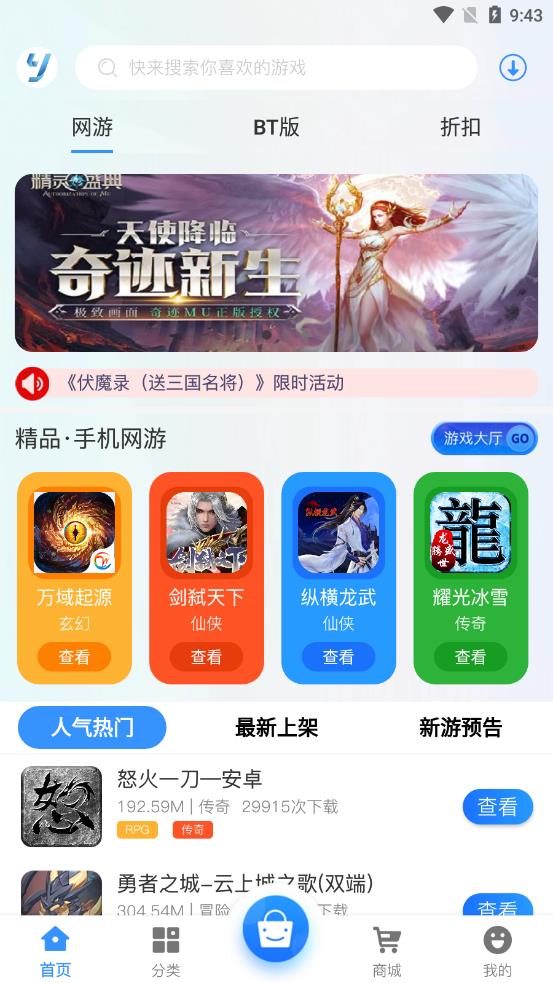 每天都有新的手游推荐,精品手机网游,游戏大厅免费下载,人气热门、最新上架、新游预告全都有。每周还会推出专题推荐,帮助玩家发现更多优质游戏。