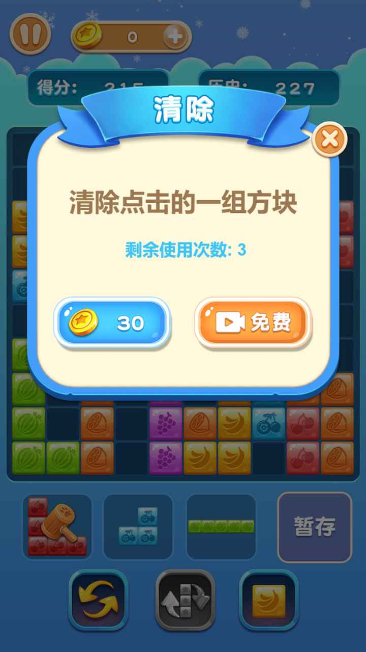 游戏非常考验你的思维能力,需要你仔细观察并快速做出判断。玩家需要通过点击和滑动屏幕来移动水果方块,将它们放置在合适的位置。正确地放置你的方块,填满空间,完成每一个挑战。当方块完美契合时,会产生连锁消除效果,带来爽快的游戏体验。当你填满空间时,你会感到满足!游戏还设计了多种特殊障碍和机关,需要玩家开动脑筋才能突破。然后体验一下"心流"的瞬间,并偶遇那些真正让你思考的刺激性障碍。你能走多远?