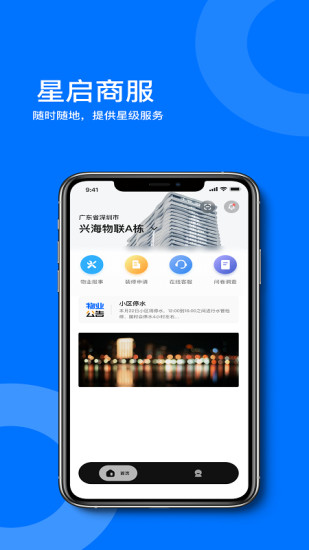 星启商服App是由深圳市兴海物联科技有限公司专为现代化写字楼打造的一站式综合服务平台。作为写字楼数字化管理的创新解决方案,该应用集物业服务、租赁管理、办公支持等多项功能于一体,致力于为入驻企业及员工提供高效、便捷、智能的服务体验。通过移动互联网技术,星启商服App让传统物业服务焕发新生,实现线上线下无缝衔接,大幅提升写字楼管理效率和服务品质。
