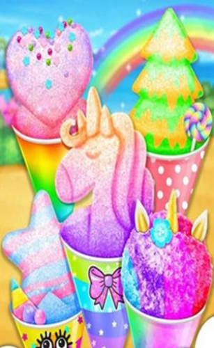 游戏配备了功能强大的彩虹刨冰机,可以轻松制作出各种造型的刨冰。装饰系统包含了上百种独角兽主题的装饰品,让你的甜品充满童话色彩。创新的模具系统让你可以将刨冰塑造成星星、爱心、动物等各种可爱形状。食材库中准备了数十种不同口味和颜色的原料,满足你对甜品创作的所有想象。