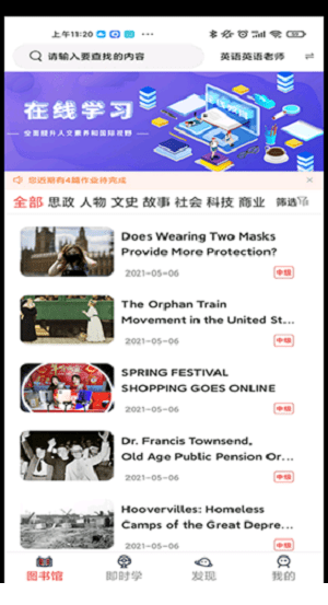 多种学习辅导信息推荐在上面,不管是哪一种学习方式上面都有提供,包括听力训练、口语练习、阅读理解和写作指导等全方位内容;在线使用还是挺不错,多种文章分类信息提供在上面,系统界面简洁明了,操作流畅便捷;你的英语学习辅导提供的十分前面,快速的找到你喜欢的学习方式去提升你的学习成绩吧,每日学习报告和进步曲线让学习成果一目了然。