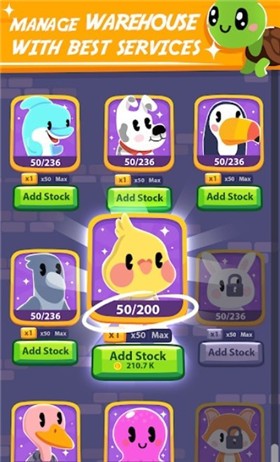 照顾你养的各种动物,忘记过去,成为动物大亨的,解锁最好的空闲的员工,不断发展经营,享受有史以来最好的游戏之一。动物们会展现独特个性,有的喜欢音乐有的偏好运动,满足它们的喜好能提升产出品质。传奇员工拥有特殊技能,能大幅缩短生产周期。