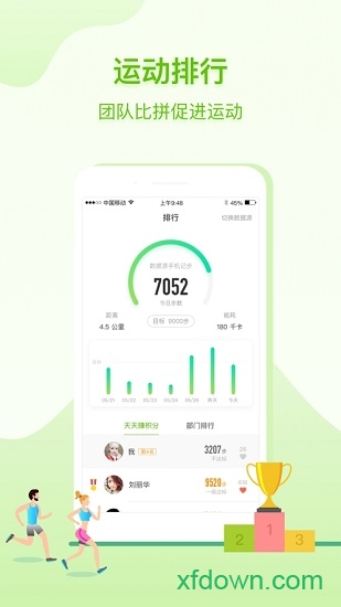 企业排行,航天呦呦健康app量化运动,喊上同事一起来pk;支持部门、小组等多维度排名,激发团队运动热情。