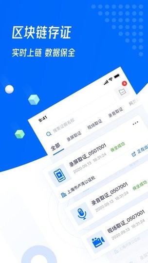 软件中为用户提供了区块链存证的功能可以使用,实时上链的内容功能为用户保证了数据的安全,不需要担心会有隐私数据泄露的情况会出现。采用分布式存储技术,所有文件碎片化加密存储于多个节点,即使单个节点被攻破也无法还原完整数据。