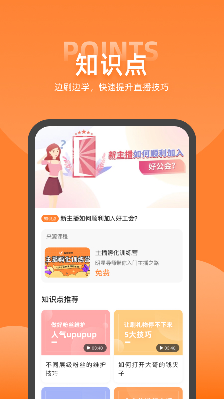 在这个软件里,通过科学的课程体系和实战演练,你可以在短时间内学会直播,让你更深入的了解这个行业,得到全面的发展,快速实现从新手到专业主播的转变;