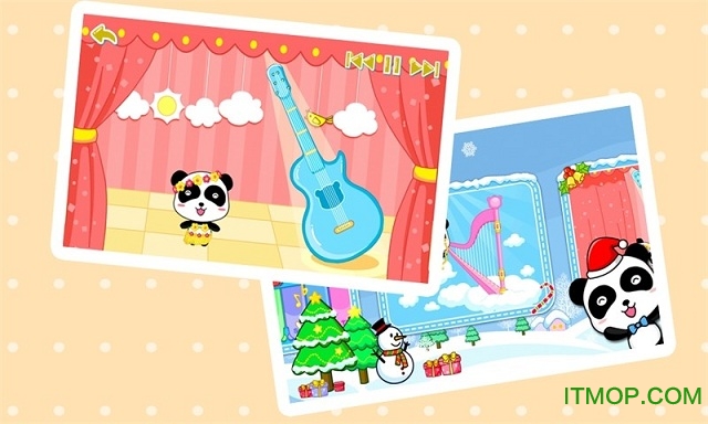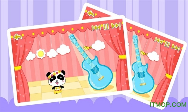 吉他:在炫丽的虚拟舞台上,可爱的小熊猫将随着吉他旋律翩翩起舞。更有趣的是,孩子们还可以点击舞台上的各种装饰物,每次点击都会带来不同的惊喜互动,让音乐体验更加丰富多彩。
