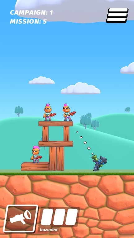 这是一款极具创意的休闲闯关游戏,玩家需要运用智慧和策略来解决各种有趣的谜题挑战。游戏中配备了多种火箭发射器,每把武器都有独特的弹道特性。玩家必须在有限的弹药内精准计算抛物线轨迹,才能成功消灭所有敌人。随着关卡推进,难度会逐渐提升,需要玩家不断调整战术策略。游戏还加入了物理引擎,让爆炸效果和物体破坏更加真实震撼。