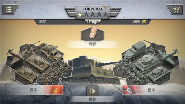 特别值得一提的是游戏的视听表现。精美的手绘风格战场地图,配合动态光影效果,营造出令人惊叹的视觉效果。战斗时的爆炸、射击音效都经过专业录制,搭配气势恢宏的背景音乐,让玩家仿佛置身于真实的战场之中。六边形网格地图设计既保留了传统战棋游戏的策略深度,又通过现代化的UI设计提升了操作体验。
