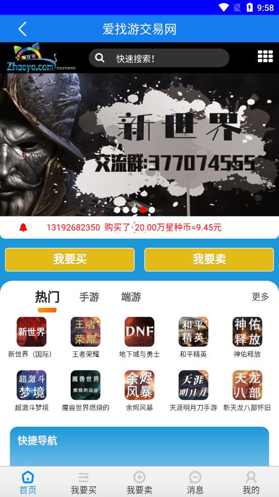 爱找游交易网是一款功能强大且安全可靠的游戏交易平台,专为游戏爱好者量身打造。作为国内领先的游戏交易平台之一,爱找游交易网不仅提供便捷的游戏交易服务,还整合了丰富的游戏资讯内容,让玩家能够一站式满足所有游戏需求。平台采用先进的加密技术和严格的审核机制,确保每一笔交易都能安全无忧地进行。