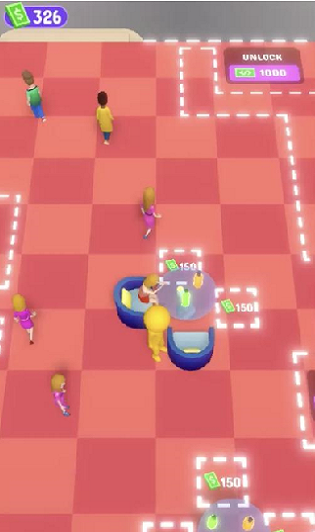 左上角是你的钱。摇臂控制夜总会老板去要建的区域,那个区域会自动吸钱。游戏采用直观的触控操作,让你能轻松管理夜店的各个角落。