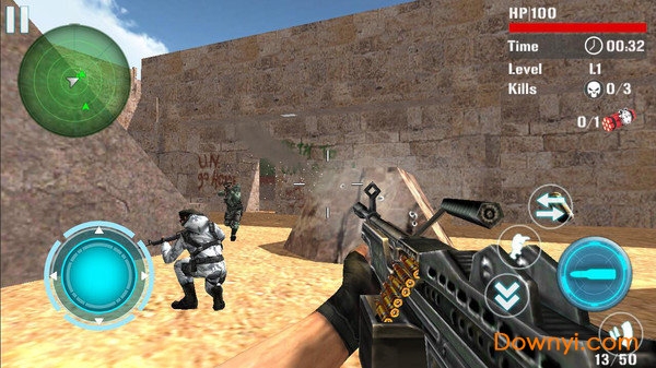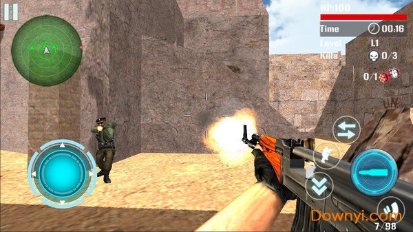 游戏采用直观的触控操作,射击按钮控制开火,跳跃按钮实现战术移动,下蹲按钮帮助隐蔽,武器切换按钮快速更换装备,弹夹更换按钮确保火力持续。智能雷达系统会实时指示目标方位,帮助玩家在限定时间内完成反恐任务。游戏提供完善的装备系统,玩家可以自由选择武器配置、游戏模式和任务关卡。独特的拆弹玩法要求玩家在距离炸弹1米范围内保持3秒才能成功拆除,大大提升了游戏的紧张感和真实度。