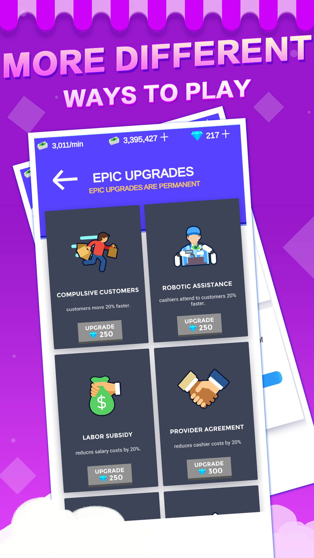 升级超市设备:从商品种类到员工素质,从收银系统到卖场环境,所有环节都可以进行升级改造。通过持续投入,提升超市整体档次,赚取更多利润,解锁更多有趣的玩法。