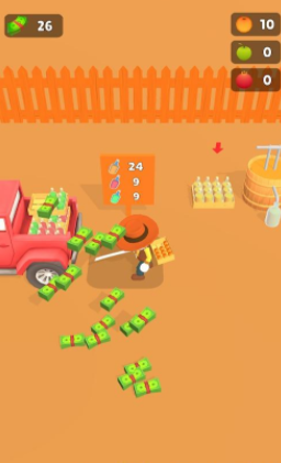 水果自动跳入榨汁机进行榨汁并包装,整个过程充满趣味性,需要你将榨好的水果汁搬运到车斗上售卖赚钱。