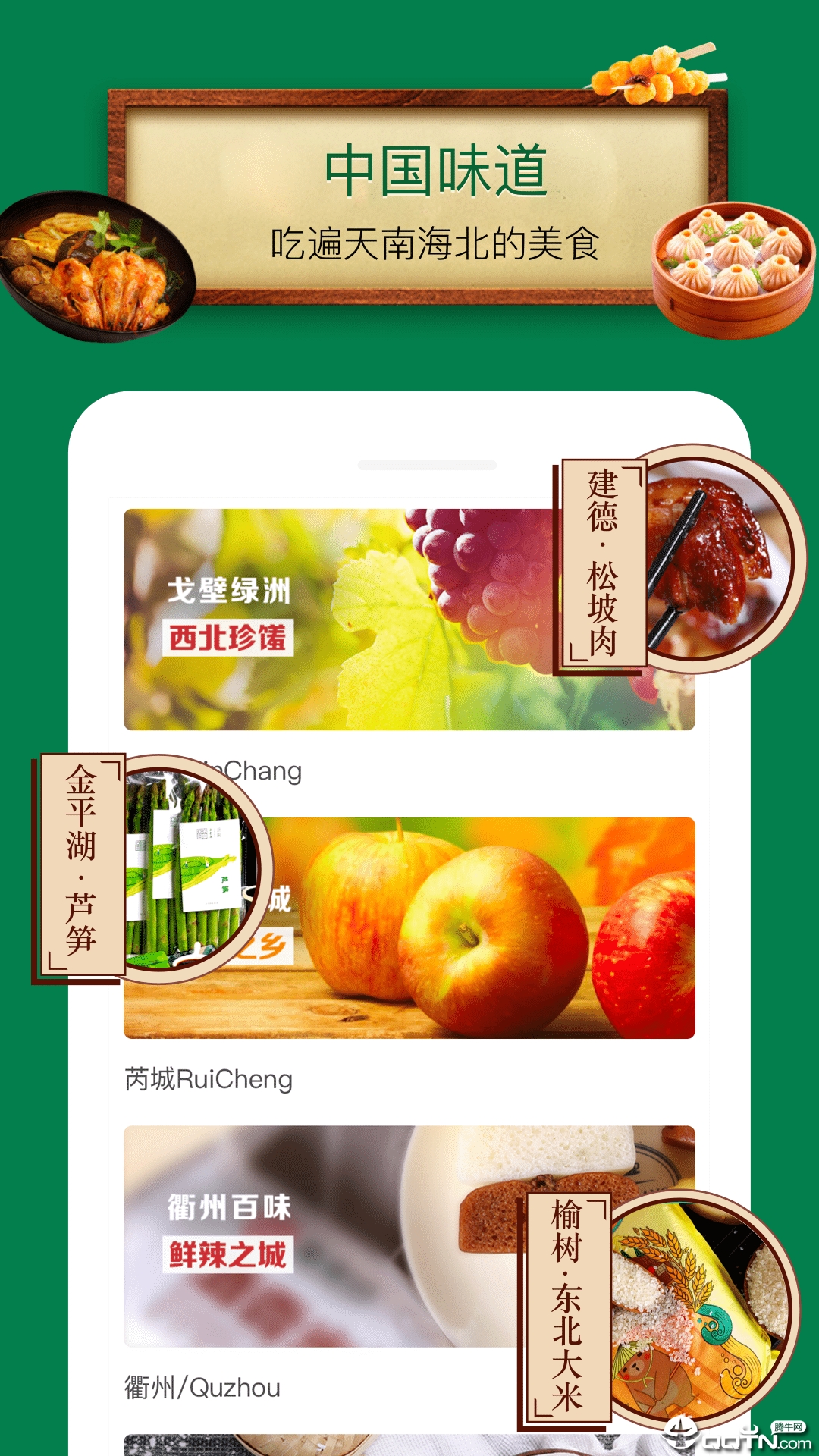 中国味道:全新卷轴形式展示分站信息,给你不一样的视觉盛宴。新增地方特色专区,让您足不出户尝遍各地美食。