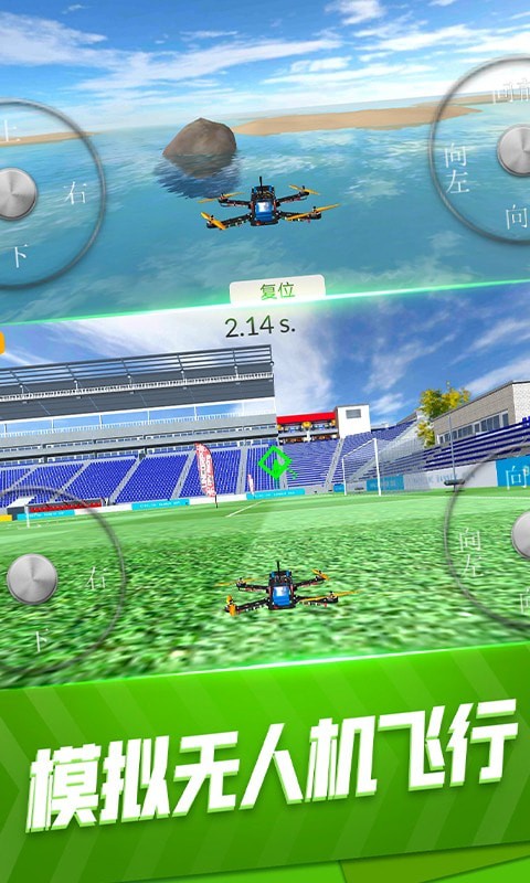 解锁更多的游戏地图吧,给你带来真实的飞行体验,驾驶体验很棒,从新手训练场到专业赛道应有尽有。玩家可以调整无人机的各种各种视角,让你获得非常棒的驾驶体验,包括第一人称驾驶舱模式和自由摄影模式。掌握好最佳的飞行路线吧,到达任务要求的各个地点,完成游戏任务,系统会根据飞行平稳度和任务完成度给出专业评分。