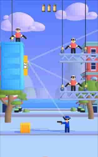 特工子弹不多了下载是一款充满创意与挑战的卡通风格休闲射击游戏。在这款游戏中,玩家将化身一名弹药紧缺的特工精英,必须精打细算地使用每一颗珍贵的子弹。游戏通过独特的物理弹道系统,要求玩家反复练习寻找最佳射击角度,在子弹反弹、穿透等特殊机制下完成精准狙击。随着关卡推进,您将面临越来越复杂的战场环境,需要运用策略思维和快速反应能力来突破重围。