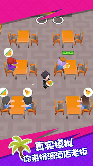 动态顾客系统:50多种顾客类型各有偏好,商务客注重效率,家庭游客需要儿童设施,满足不同需求可获得额外小费。随着游戏进程,还会解锁特殊VIP客人,他们能带来丰厚收益,但服务要求也更为严格。