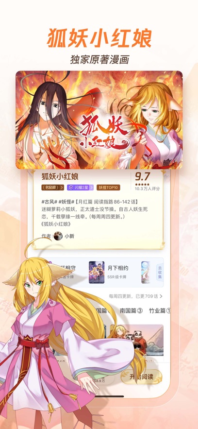 95、00后热爱的漫画平台!拥有超人气作品《狐妖小红娘》《一人之下》《19天》《斗罗大陆》,除此以外: