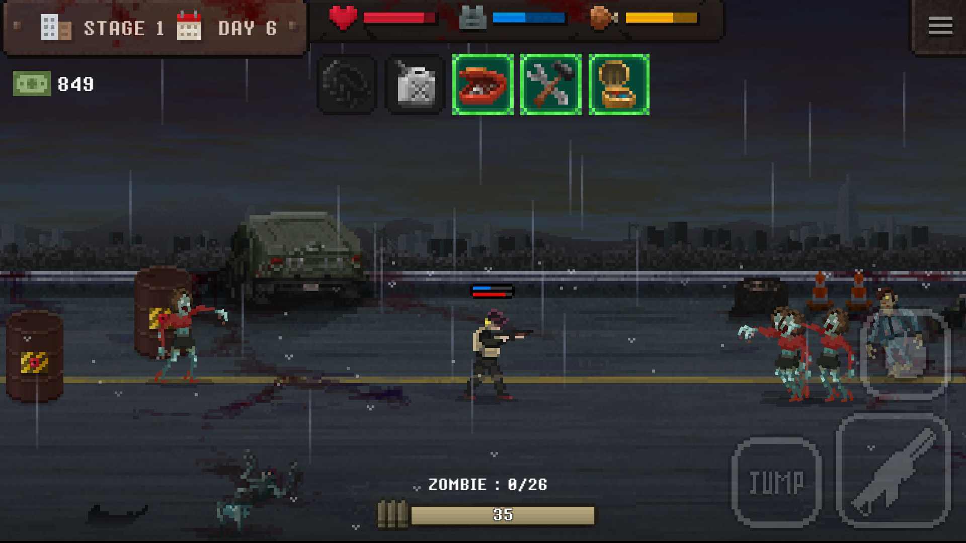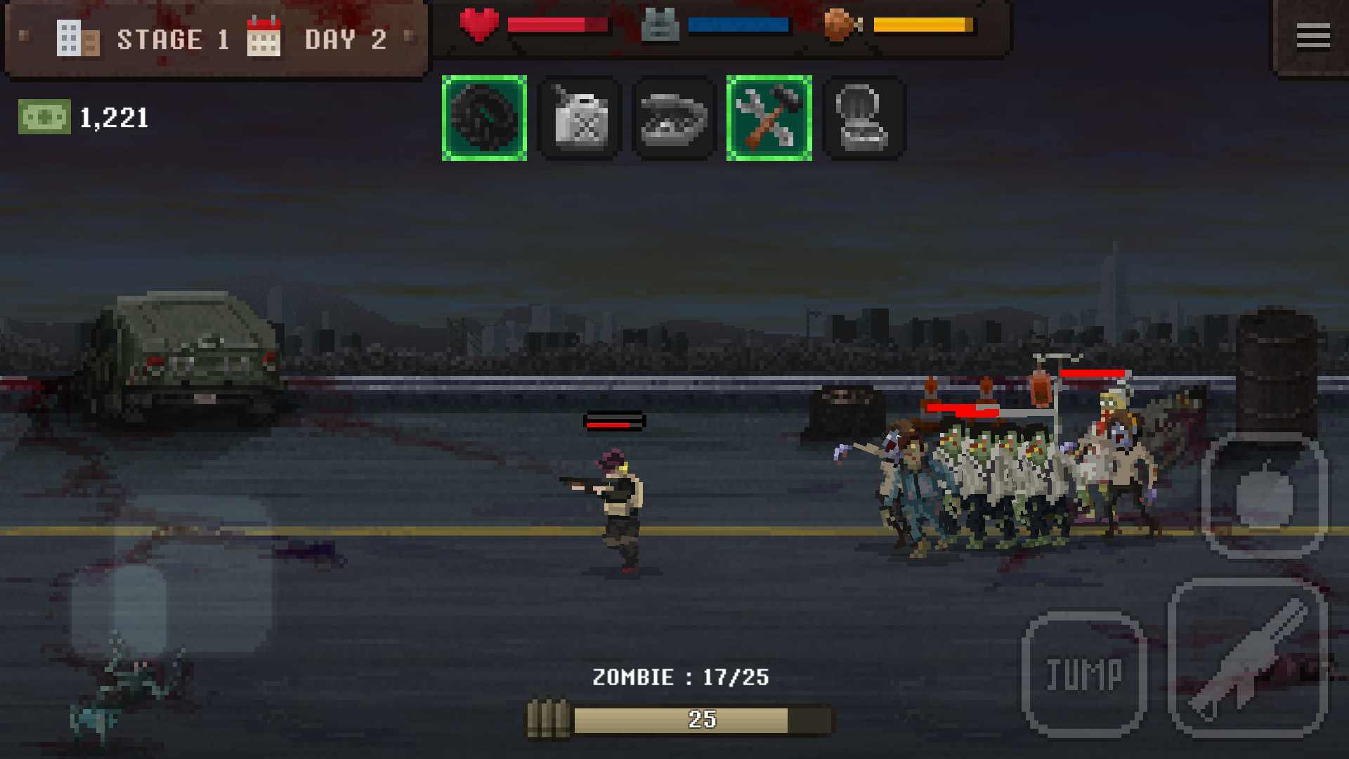 这是一款融合了射击与生存要素的像素风格游戏,背景设定在僵尸横行的末日世界。玩家将扮演少数幸存者之一,在废墟城市中寻找食物、武器和庇护所。游戏通过七个基础动作构建出完整的生存体系,从搜索物资到对抗僵尸都需谨慎规划。随着游戏进程,玩家会遇到不同类型的僵尸威胁,必须合理利用有限资源才能延长生存时间。独特的像素美术风格为这个残酷世界增添了一抹别样魅力。