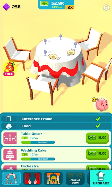 在闲置的婚礼中,你将进入一个梦幻般的婚礼世界。游戏提供了海量的装饰道具和服装配饰,从经典的白色婚纱到时尚的彩色礼服,从传统的玫瑰花束到创意的多肉植物,应有尽有。你可以自由搭配这些元素,创造出独具特色的婚礼场景。