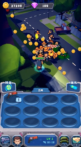 游戏中还是有很多的道具使用的,大家注意功能,合理使用道具可以让你事半功倍。当屏幕上出现僵尸的时候,点击即可开火了,简单直观的操作方式让新手也能快速上手。进入游戏,点击开始按钮,选择关卡,丰富的关卡设计保证了游戏的可玩性。点击屏幕的左下角可以控制人物的方向,在右边有开火按钮,当然还有各种必杀技,多样化的操作方式让战斗更加灵活多变。