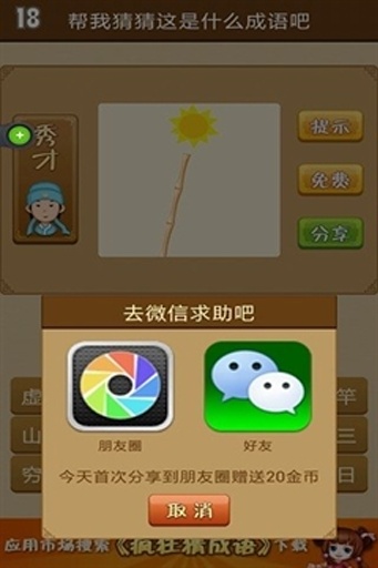 2. 文字提示猜成语:游戏会给出文字提示,如成语的解释、出处或近义词,玩家根据提示猜出成语。例如,提示为“形容非常害怕”,玩家需要猜出成语“胆战心惊”。这种玩法帮助玩家深入理解成语的含义。