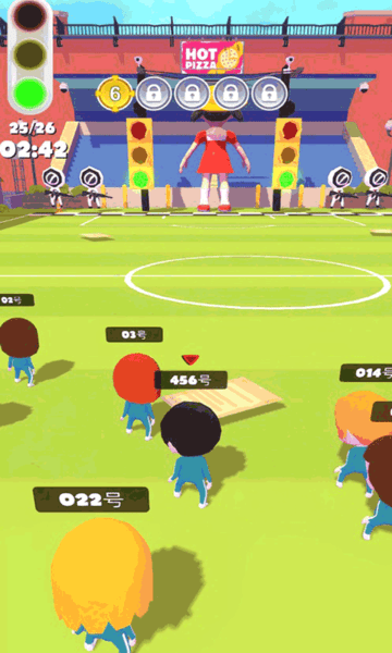 游戏提供了丰富多样的玩法模式,包括紧张刺激的123木头人、考验耐心的抠糖饼挑战、力量与策略并重的拔河对决,以及惊心动魄的跳跃玻璃桥等。这些玩法完美复刻了经典鱿鱼游戏中的精彩内容,并进行了优化升级。玩家可以自由选择喜欢的模式,或是随机匹配不同关卡,体验最纯粹的竞技乐趣。在这个充满变数的派对中,你需要时刻保持警惕,灵活应对各种突发状况,才能在这场大乱斗中脱颖而出。