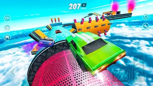 玩家将驾驶高性能赛车穿梭于多样化的赛道环境,从繁华的城市街道到险峻的山路,再到令人目眩的空中平台,每个场景都经过精心设计。游戏提供丰富的特技动作系统,包括高空跳跃、360度翻转、侧向旋转等高难度动作,玩家需要精准控制油门、刹车和方向,才能完美完成每个特技表演。随着游戏进程的推进,玩家可以通过完成挑战获得丰厚奖励,解锁更多性能卓越的赛车,不断提升自己的驾驶技术。游戏关卡设计循序渐进,从简单到复杂,玩家需要灵活应对不断变化的赛道地形和突如其来的障碍物,在保持高速行驶的同时确保赛车的稳定性。