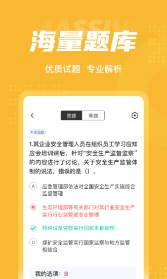 安全工程师考试聚题库是针对安全工程师资格考试的专业题库,全面覆盖了安全工程师考试大纲规定的所有知识点和考核范围。题库不仅收录了历年安全工程师考试的全部真题,还提供了大量高质量的模拟试题,所有题目都经过精心筛选和编排,完全模拟真实考试的题型和难度。安全工程师考试聚题库特别配备了智能搜题功能,无论是文字输入、语音提问还是拍照上传题目,都能快速找到准确答案和详细解析。这款应用还提供错题本、学习进度跟踪等实用功能,是考生系统备考、顺利通过考试的得力助手。