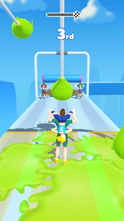 控制老公背着老婆进行跑步闯关,小心各种机关。操作方式简单易上手,但需要精准把握时机来躲避障碍物,考验玩家的反应能力。