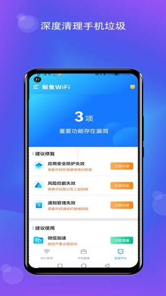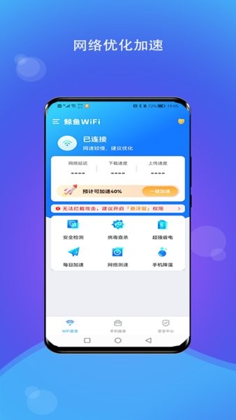 鲸鱼WiFi提供全方位的网络安全保护功能。它可以对热点进行安全检测,识别潜在风险,保护您的个人信息不被泄露。同时,内置的网速测试工具可以快速评估当前网络质量,让您对连接状态了如指掌。
