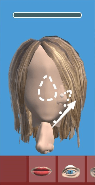 不用担心歪的特别明显,将女人的嘴巴、鼻子、两只眼睛和眉毛都分别安好。游戏提供了多种调整工具,即使投掷失误也能进行微调,让最终效果更加完美。