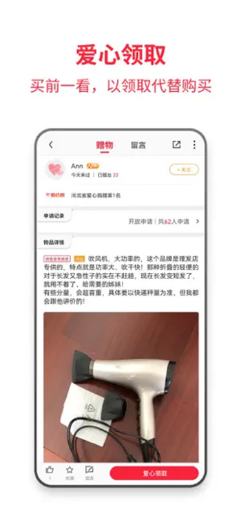 用户可以通过平台申请发布产品信息,支持以图文、视频等多种形式展示商品详情,实时查看申请人数和用户反馈。平台提供丰富的商品信息展示,包括详细的成色描述、使用说明等,还有专门的爱心专区提供免费商品领取服务。所有商品都经过智能分类和标签化管理,用户可以通过关键词搜索、分类筛选等方式快速找到所需商品。从母婴用品到数码家电,从服饰箱包到家居装饰,各类优质二手商品应有尽有,满足不同用户的需求。
