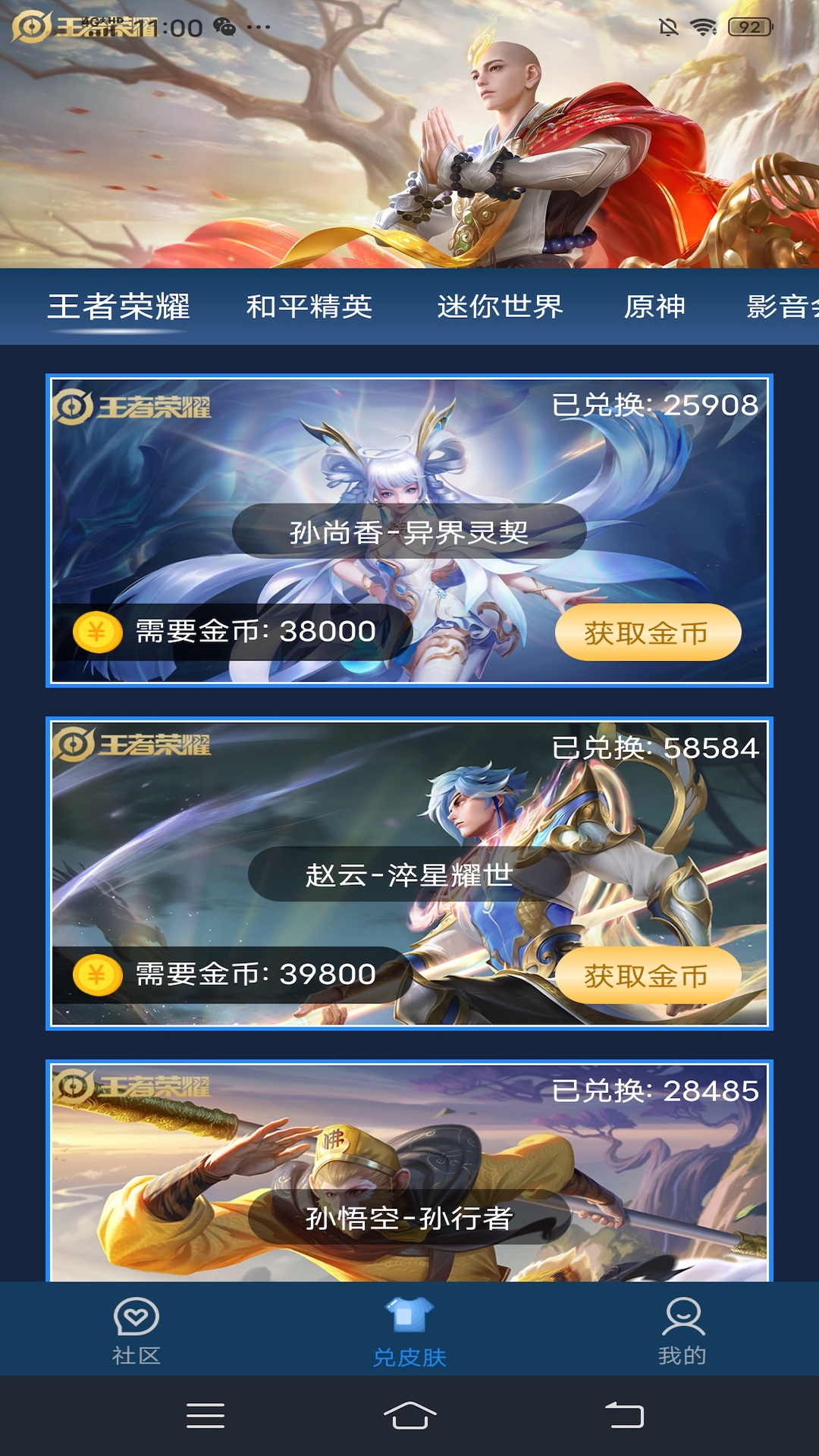 能够帮助大家领取各种游戏皮肤的手机软件,不管是王者荣耀皮肤还是皮肤都能够在这里进行兑换领取。支持超过20款热门游戏的皮肤兑换服务。