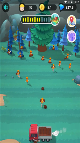 在探索森林的过程中,玩家可能会偶遇神秘的森林精灵。这些精灵性格各异,有的调皮捣蛋,有的乐于助人。与精灵建立良好关系不仅能获得临时增益效果,还可能解锁隐藏任务。游戏初期的基础工具确实效率较低,但通过完成订单任务和特殊挑战,玩家可以逐步升级装备,从生锈的铁斧到电锯,大幅提升工作效率。此外,游戏还设计了丰富的娱乐玩法,比如伐木比赛、木材运输挑战等,让玩家在砍伐之余享受更多乐趣。