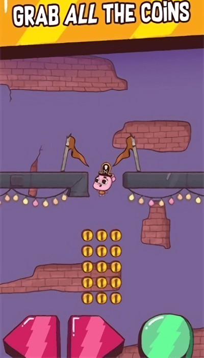 玩家可以在这个游戏中冒险,操作感觉充满乐趣,玩法也很有趣,流畅的操控体验让人欲罢不能。你可以解锁许多可爱的卡通人物,游戏中的关卡非常丰富,一路上都有各种挑战,保证不会感到单调。在关卡中收集金币,利用你灵活的行走姿势和快速的手速躲避障碍物和小怪,冲向终点,金币可用于解锁新角色和道具。这里的关卡很多,可以体现出游戏中的很多跳跃方式,关卡中的背景也很漂亮,每个场景都经过精心设计。多种不同的玩法随意选择,在这里你可以体验到最灵活的操作和复古怀旧的风格,满足不同玩家的喜好。这里有很多陷阱和机制,需要动动脑筋才能前进,这些设计既考验技巧又富有创意,他们可以给你带来治愈的感觉。