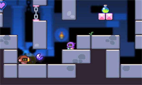 游戏采用直观的触控操作方式,玩家可以轻松控制角色移动、跳跃和施展魔法。在前进过程中,需要灵活躲避各种动态障碍物,同时还要收集散落在场景中的特殊道具。这些道具不仅能提供临时增益效果,有些还是解锁新区域的关键。