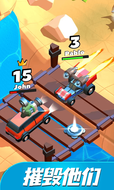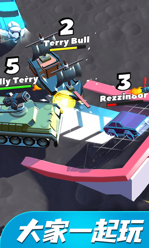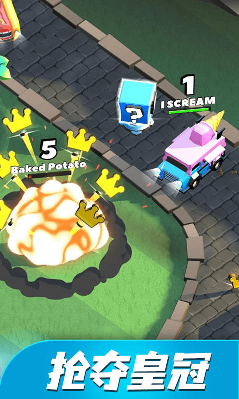 这款画风独特的io类休闲游戏提供了快速匹配模式,让玩家随时都能享受紧张刺激的对决。在游戏中,玩家需要灵活操控车辆改变行驶路线,同时收集场景中的各种道具。这些道具各具特色,有的能增强攻击力,有的能提升防御能力,为游戏增添了更多策略性和趣味性。玩家需要驾驶车辆前进、收集道具、攻击敌人,并尽可能多地收集皇冠。游戏中的物理碰撞效果逼真,每次撞击都能带来强烈的视觉冲击。与来自各地的玩家同场竞技,展开一场场精彩纷呈的车辆大乱斗。