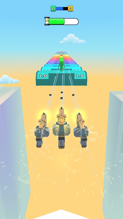 武器演变最具特色的就是其创新的武器成长系统。在游戏中,你持有的武器会随着使用而不断进化,比如你拿着锤子跑得越远,锤子就会变得越大,威力也会随之增强。不过要注意的是,武器变大的同时可能会影响你的移动速度,这就需要你更加专注地控制角色。游戏还设置了丰富的任务系统,只要你能保持稳定的发挥,不犯错误,就能快速前进,完成更多挑战,获得丰厚奖励。这些独特的游戏机制让武器演变在众多射击游戏中脱颖而出,成为不可多得的精品之作。