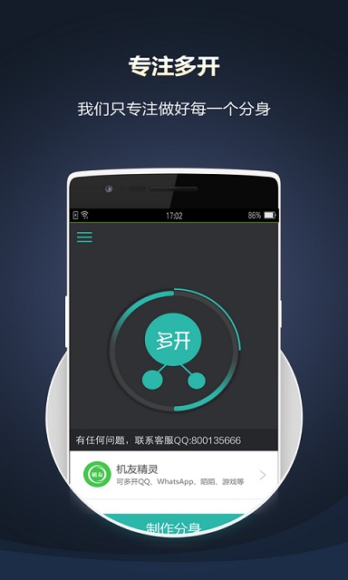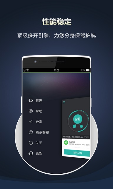 【使用说明】首次使用时需要稳定的网络连接,建议在Wi-Fi环境下进行操作。创建分身完成后,请勿删除本应用,否则可能导致分身无法正常使用。软件提供详细的操作指南,即使是新手用户也能快速上手。